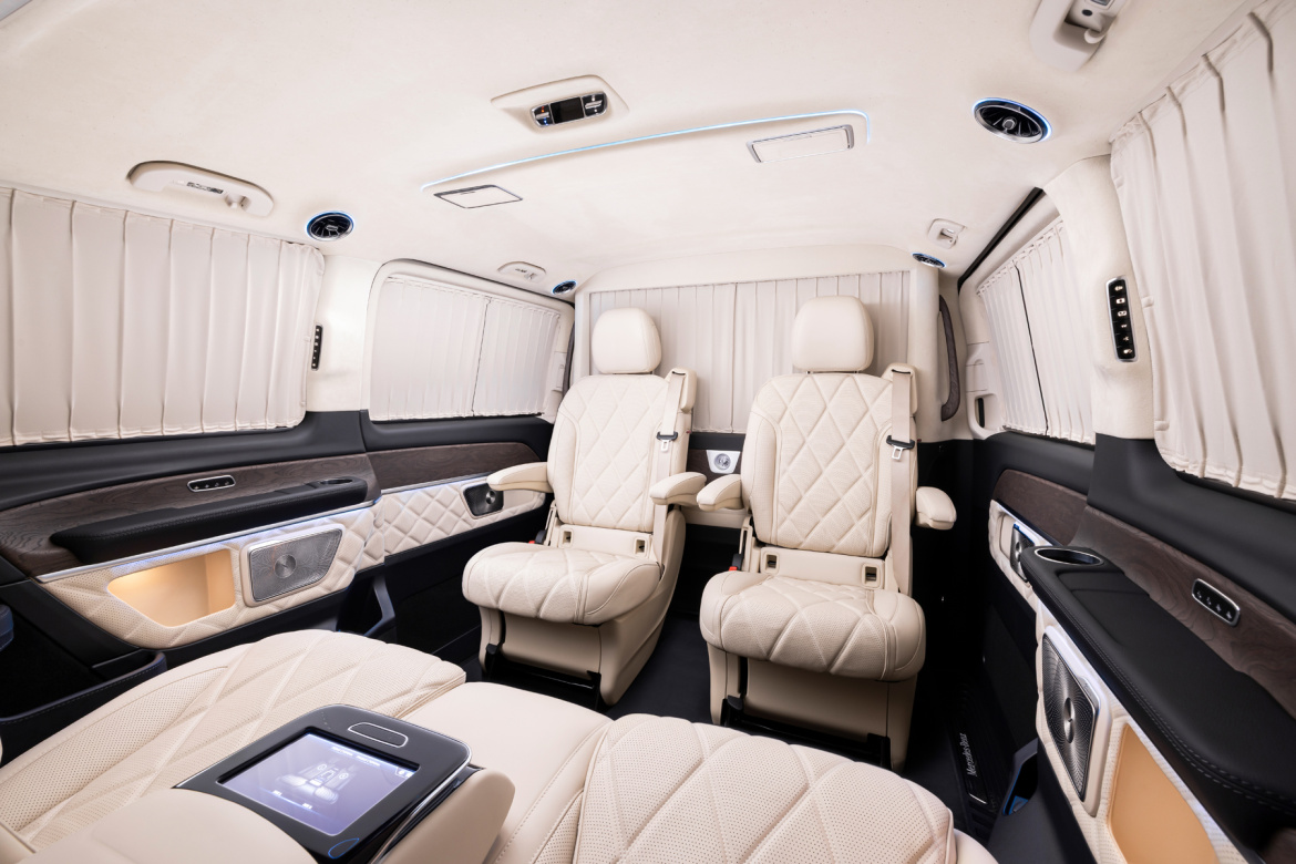 • Перешив одиночных кресел второго ряда в стиле Maybach