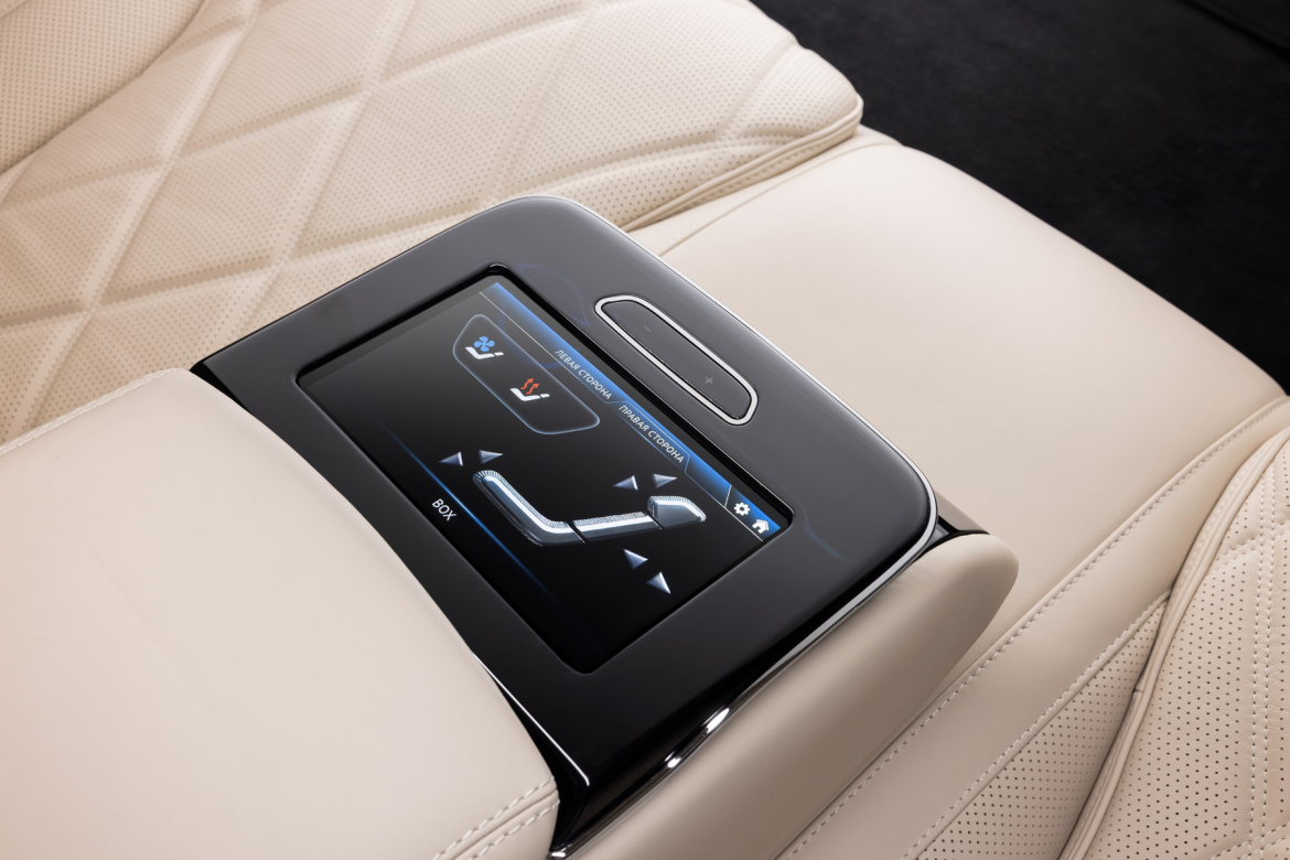 • Управление с сенсорного экрана движением сиденья, спинки и подголовника, подогревом и вентиляцией, открытием и закрытием ящиков
