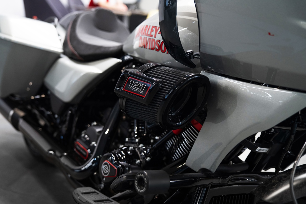 Двигатель Milwaukee-Eight 121 High Output (HO) настроен на выработку большей мощности и крутящего момента, чем двигатель Milwaukee-Eight VVT 121, с высокопроизводительным распределительным валом, высокопроизводительным воздухозаборником, вдохновленным гонками, и повышенной красной линией 5900 об/мин.